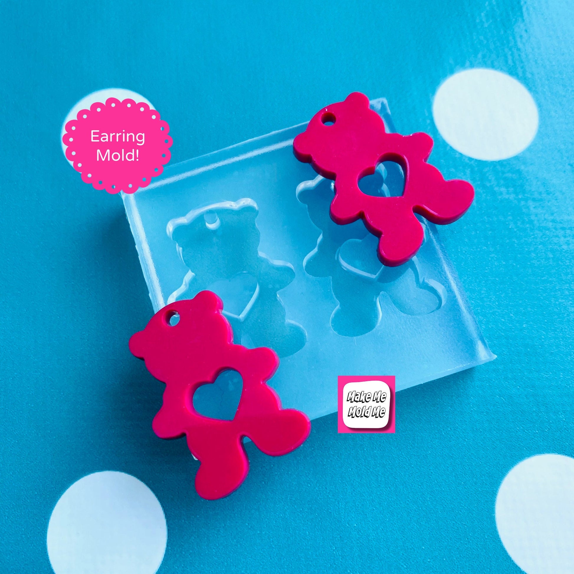 30mm Silicone Teddy Bear Earrings Mold - ResinValentines EM526