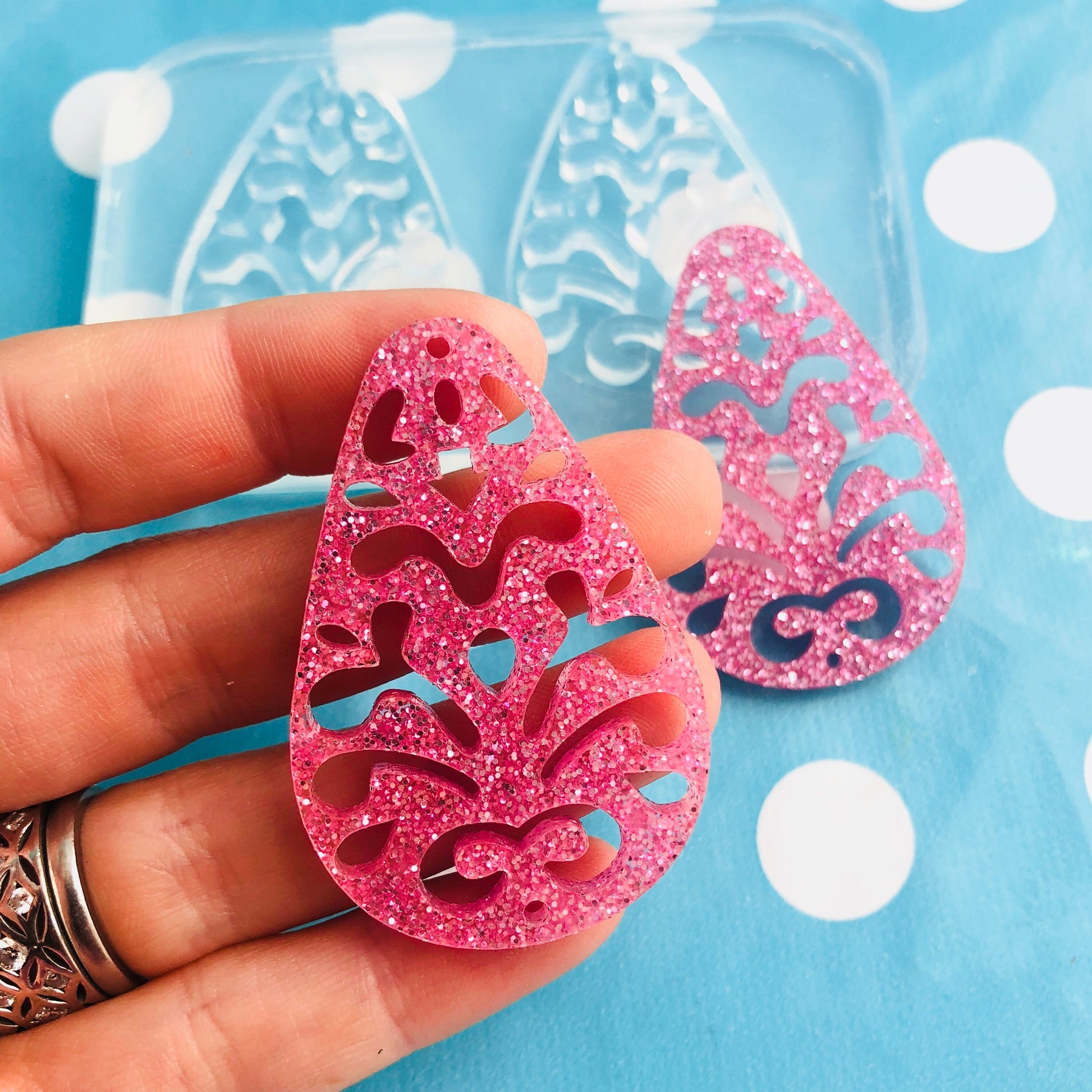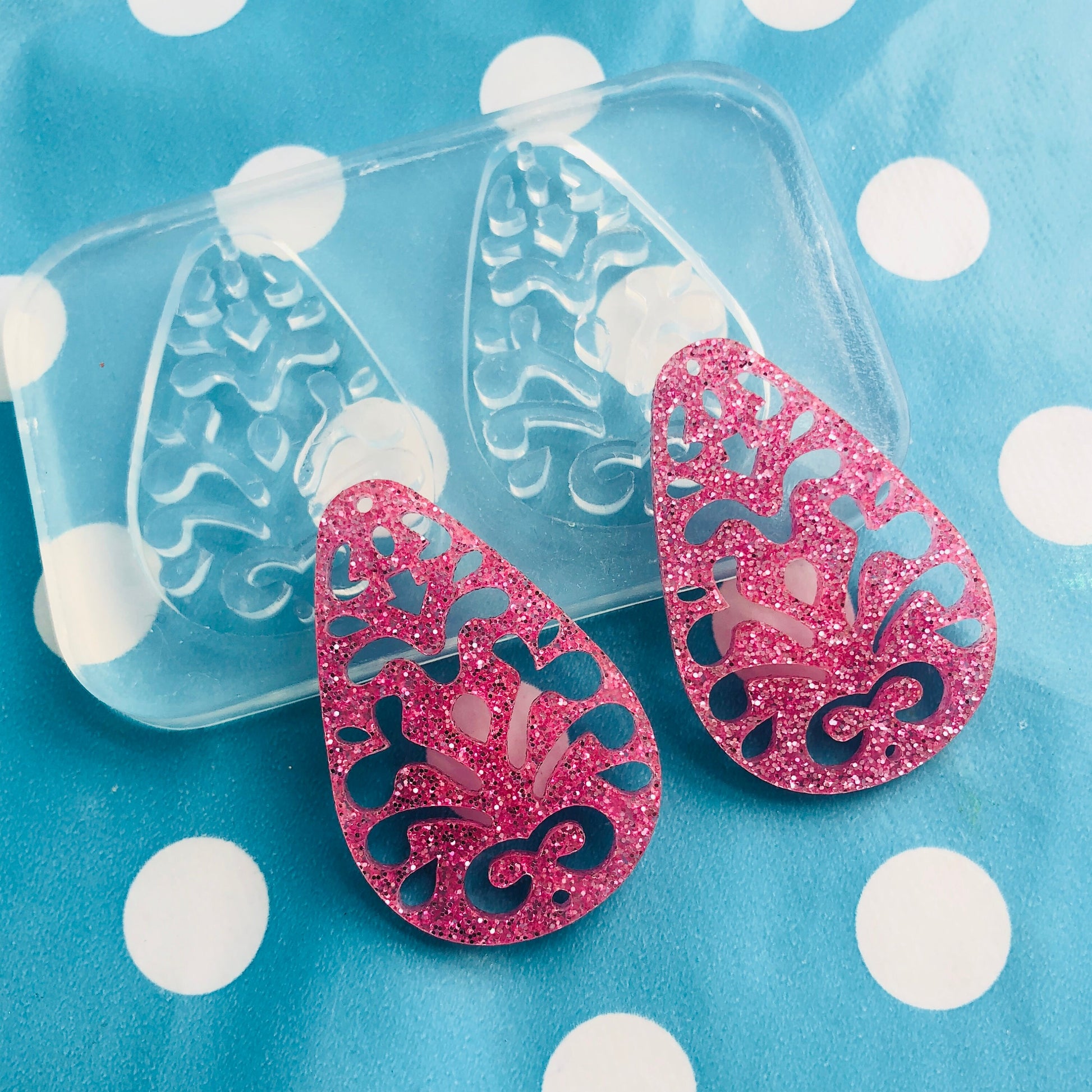 Clear Molds for Resin Jewellery 50mm Filigree Cut out Teardrop Earring Mold EM362