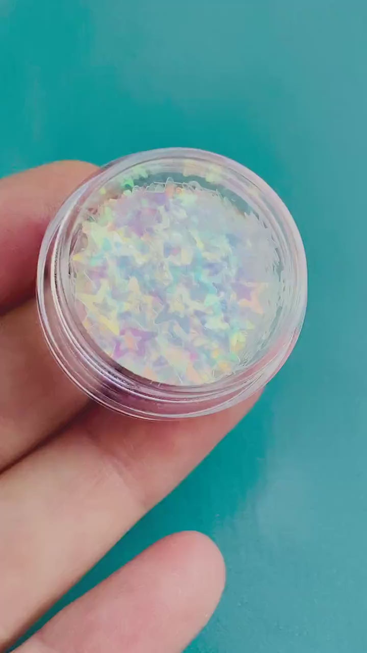 Holographic Star Confetti: White Cut Out Stars (5mm, 5ml Tub)